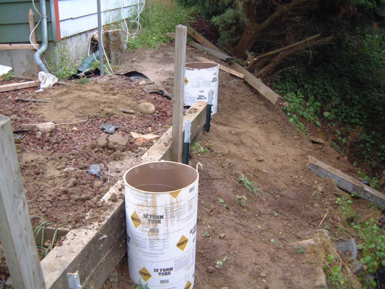 No short cuts here. These two pylons are 6' below the ground because of the slope. It was ruff with a two man auger with extensions!!! But I know these are not going anywhere.